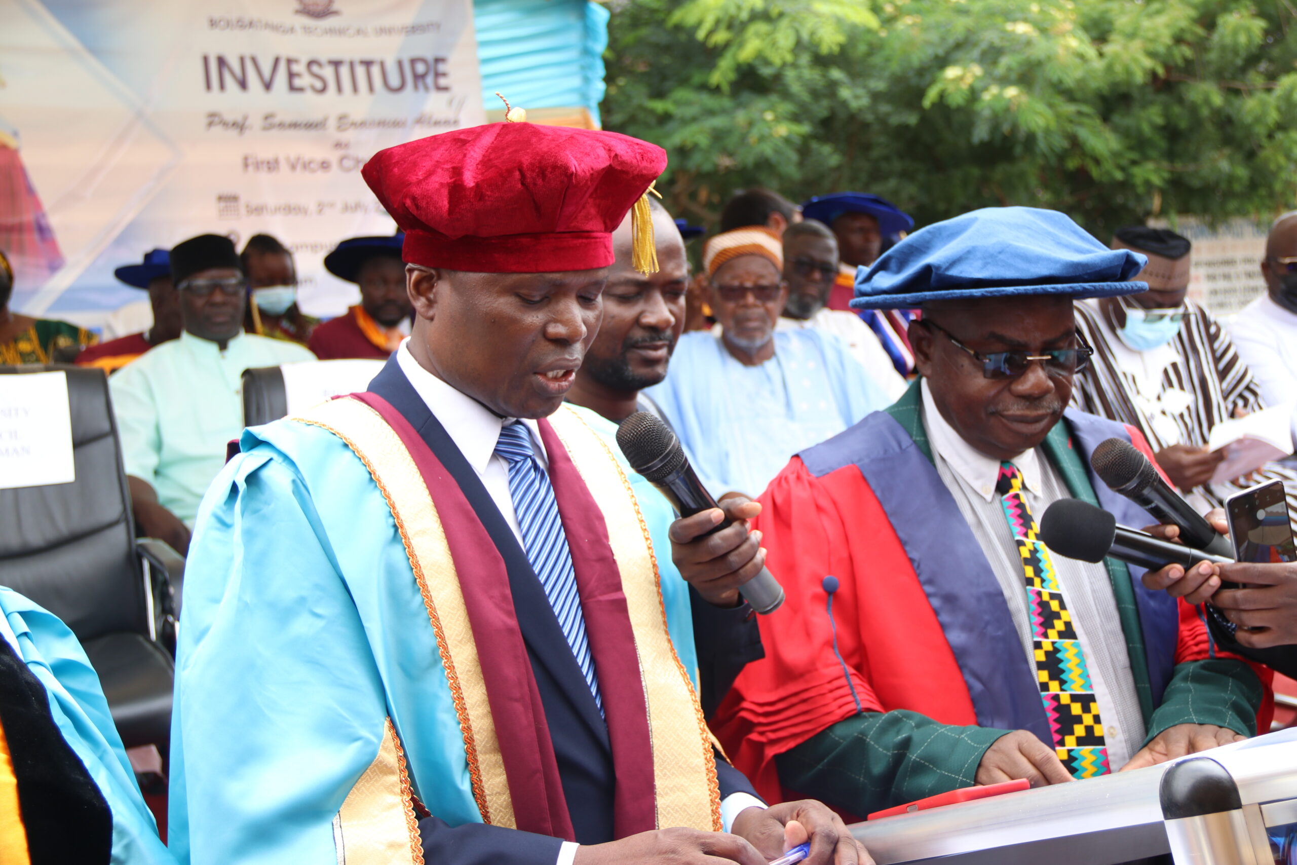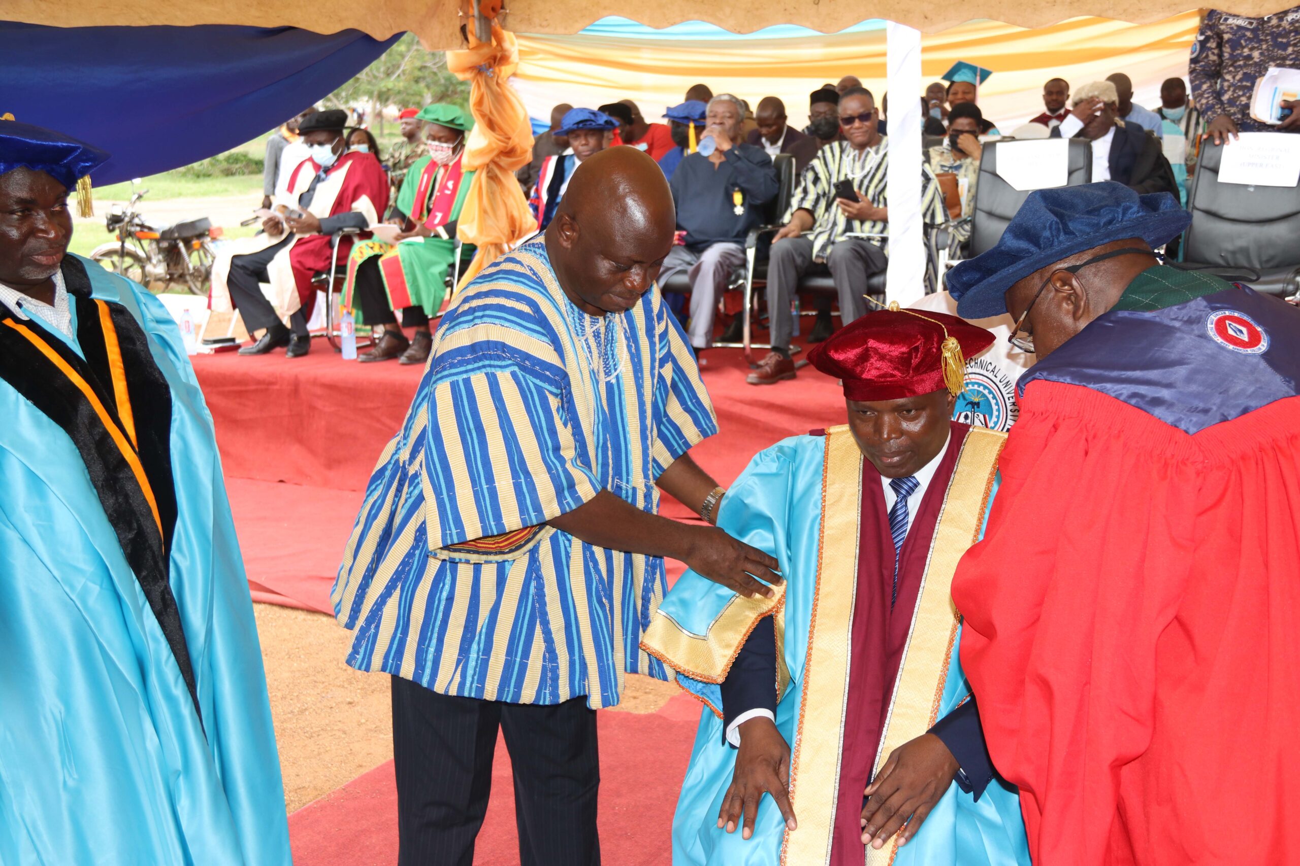 At the investiture and graduation ceremonies which were held the same day and attended by both internal and external publics of the University including the Regional Minister, dignitaries of sister Technical Universities across the country, the judiciary, and chiefs, Prof. Samuel Erasmus Alnaa was inducted as the first Vice Chancellor of the University since its conversion to a Technical University in April, 2020.