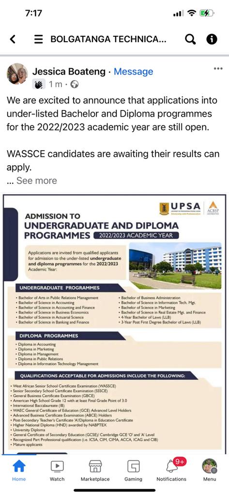 The general public can deal with Bolgatanga Technical University (BTU) through the following account:https://www.facebook.com/100063672166019/posts/53917661406/?flite=scwspnss